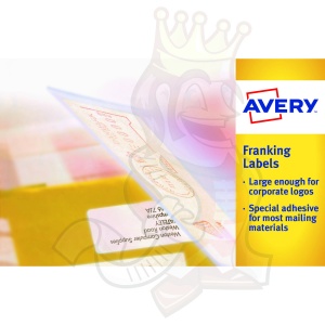 Franking Labels | FL10 | Avery Description Print postage, branding and promotional messaging onto one postage label with Avery Franking Labels. Strong adhesion ensures postage label stays stuck through the delivery process and outstanding print quality gives easy to read postage details. High quality material prints with a sharp image for a totally professional appearance.