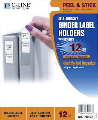 CLI70025 Self-Adhesive Ring Binder Label Holders, Top Load, 1-3/4 x 3-1/4, Clear, 12/Pack By C-LINE PRODUCTS, INC