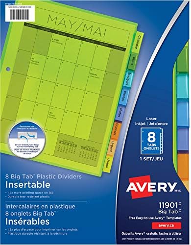 Avery 11121 Insertable Big Tab Dividers, 5-Tab, Letter Dec 08, 2004 · Avery Plastic 8-Tab Binder Dividers, Insertable Multicolor Big Tabs, 1 Set (11901) ... takes a little time to wiggle into the tab. Must go on Avery site to get right one for printing on the one sheet of labels. If you print with a template that does not print all the labels, edit your labels and turn label sheet upside down in the printer after ...